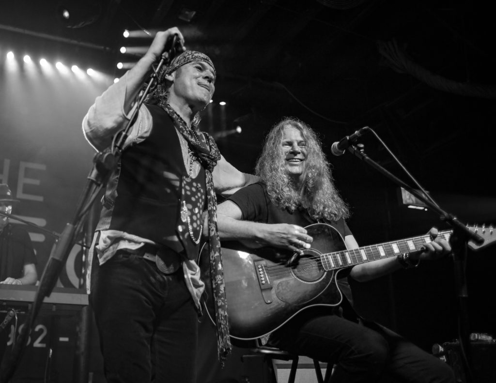 “…which is why we’re playing here tonight,” quips guitarist and fellow longest-serving Quireboy Guy Griffin, who now enjoys something of a tetchy ‘old married couple’ relationship with the raspy vocalist. “I’ve been with him longer than all of his wives,” smirks Spike. Griffin’s fellow guitarist Paul Guerin joins in the ribbing occasionally, while poor old keyboard player Keith Weir is stuck at the back where the drummer should be. Still, at least we can hear his splendid playing clearly in the unplugged format.
