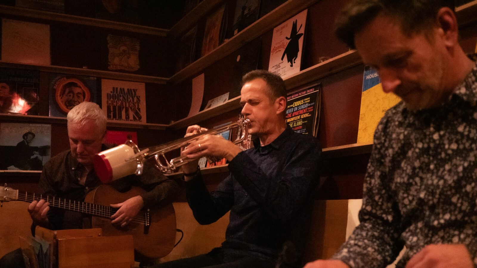 Horn player Pete Judge does most of the amiable chat. Paul Bradley and Alex Vann strum away on their various toys and join in the fun. Things can break down to hilarity quite quickly when someone musically stumbles. This is all decidedly ego free.
