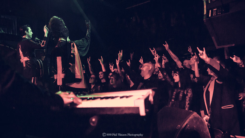 The show is slick and road-honed, interspersing ritual with music but never permitting the former to outstay its welcome. There’s plenty of opportunity for audience participation too, as we’re repeatedly invited to raise our horns and chant the names of Satan. A bloke down the front seems positively overjoyed to find his forehead on the receiving end of Alexandra’s heel during I’m a Witch.
