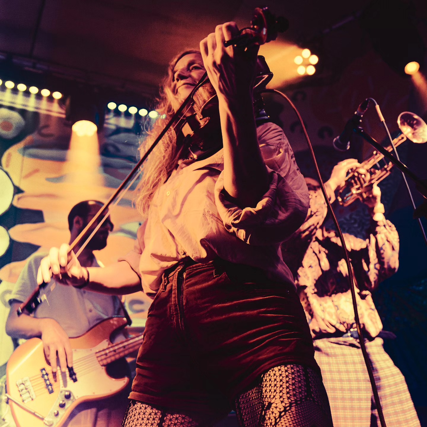 They also revisited some of their evergreen hits, including Baba Yaga, and with little encouragement the audience drowned in a Dionysian ecstasy: arms linked, beer spilling, the floor sticky, and even some impromptu crowd surfing. Jassy Seagull’s piercing vocals, paired with her accordion, cut through the chaos like a shaft of light.