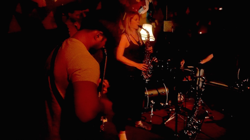 If Alun Elliott-Williams’ dazzling electric guitar is an obvious hallmark of Waldo’s Gift it shouldn’t detract from the responsive interaction between Harry Stoneham’s bass and drummer James Vine, who spent much of the gig with eyes locked as they played around with the rhythm. Their restless refusal to allow things to settle into an easy riffing jazz groove was skilfully achieved without losing continuity and flow while at the same time throwing up phrasing ideas that sax and guitar could incorporate. Often it was the density or spaciousness of the drumming that led to the important changes in the music.