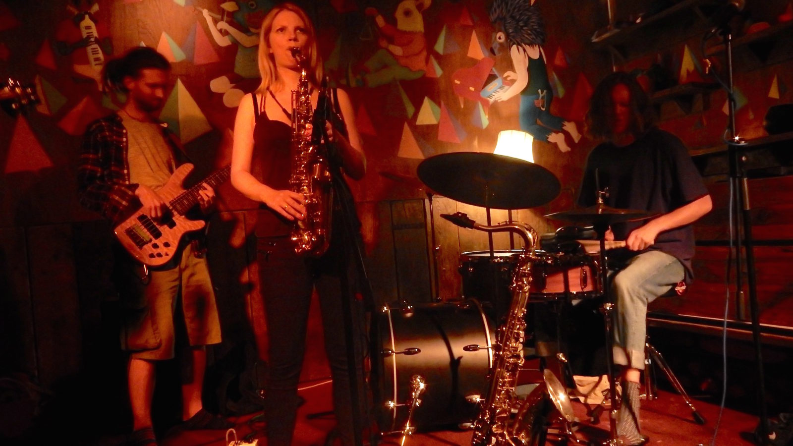 It seems odd to think of saxophonist Sophie Stockham as some kind of veteran of the jazz scene but, compared to the whippersnappers that make up Waldo’s Gift, her seven years with Dakhla Brass (among other notable projects) must warrant some seniority. The younger trio would be very much on home turf in their weekly improvisatory residency at Gallimaufry, however, and that’s a playing method that Sophie hasn’t been known for so, as this gig kicked off, it might have been her that was stepping out on the tightrope. But if so it certainly didn’t show as her assured alto sax sound slipped into the fast-running stream of their electronic jazz.