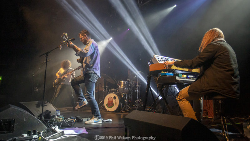 White Denim is a peculiar band – their music can’t be easily described; a mix of experimental, prog and psychedelic rock, with add-ons of soul and blues (that’s as concise as it gets). Their entrance tonight on the O2 Academy stage is a good reflection of this ambiguity that the band likes to nourish – the lights fade instantly and Sandstorm by Darude blasts in the speakers. The crowd laughs at the unusual intro as the band grab their instruments and exchange conniving looks with the audience.