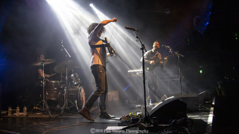 One breath inhaled and the set starts. From the first couple of songs the audience is blown away by the instrumental skills on show. It feels like every note has its own story and if one messes up then lead singer and guitarist James Petralli picks up on it and doesn’t hesitate to stop the song midway to start all over again. To play their music one needs to be really tight and precise, as the band likes subtle rhythmic shifts and crazy soli that respond to one another. The whole set feels like one hypnotic song that encounters ups and downs, like the flow of life. The almost-full Academy is in trance, some people nodding their heads and balancing from one knee to the other, some others shouting and dancing like disarticulated puppets, especially on better known songs such as Shake Shake Shake.