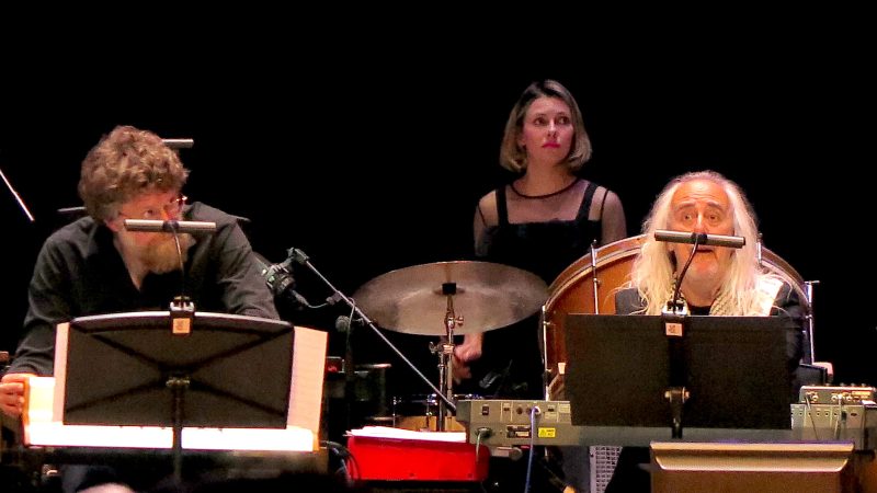 Given the breadth of vintage music technology on the stage it felt appropriate that each musician was introduced with their particular instrument. This enabled them to show the mind-boggling range of sonic possibilities at their fingertips before launching into Bach’s vigorous Fourth Brandenburg Concerto, an impeccably tight rendition albeit with some cheeky little portamento swoops and swerves that Bach might not have scored. The individual clarity of each sound (which was excellently mixed) actually seemed to emphasise the composer’s original brilliance more than a conventional string ensemble, while Dan Moore’s bass lines cranked up the piece’s rhythmic drive.