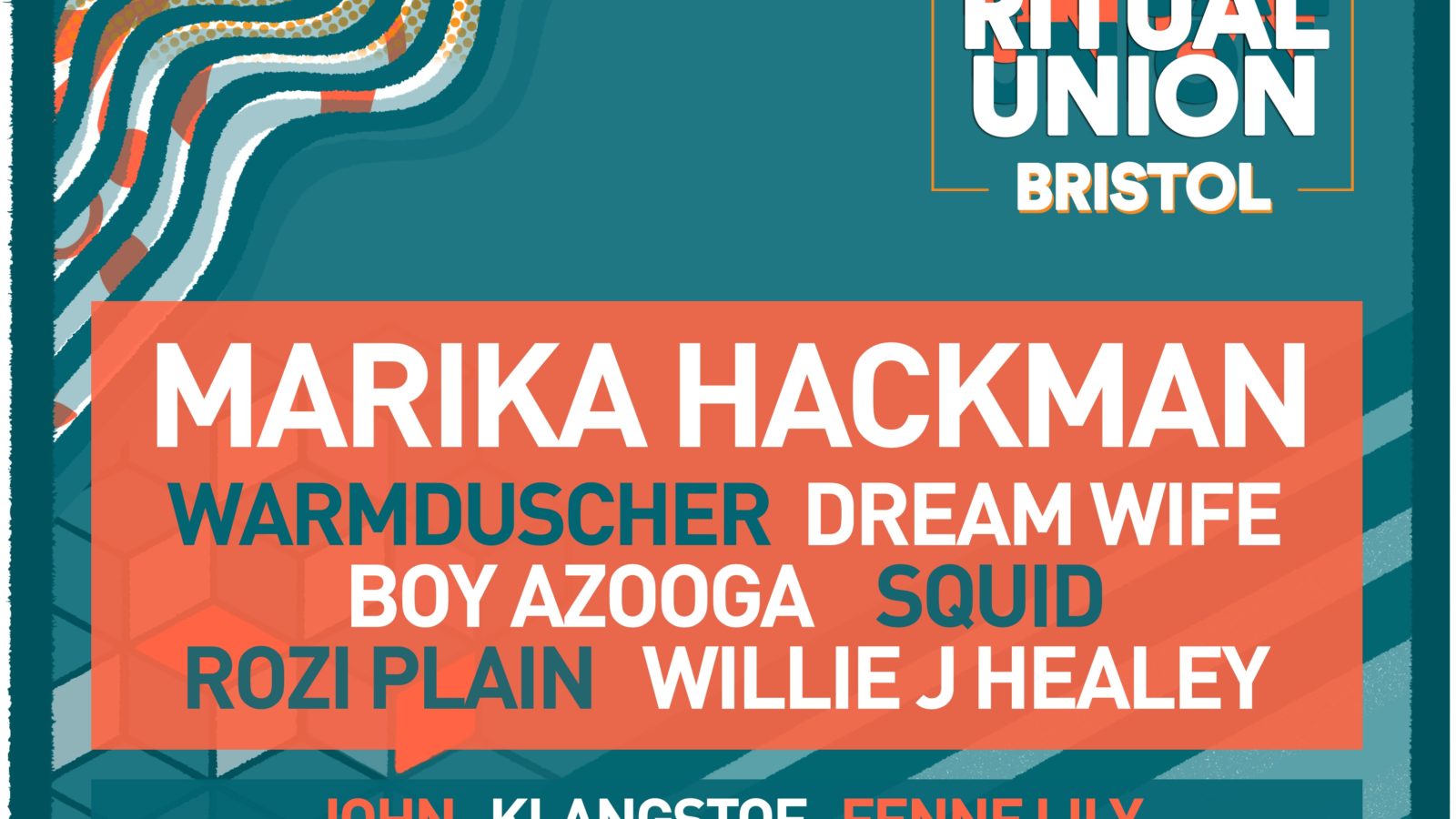 Richard Walsh, 1% of One said, “We’re thrilled to roll even more incredible artists into Ritual Union Bristol! With creativity within the city seeming to be at an all-time-high, it’s a pleasure to bring diverse, local acts that are making waves across the country back home; Rozi Plain, John, Fenne Lily, Lazarus Kane and Lynks Afrikka to name but a few.”