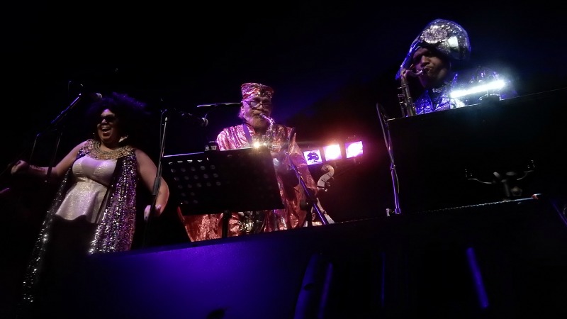 By the end there were forays off-stage, a line of sparkling costumes weaving through the gloom-shrouded crowd, but there wasn’t the need as the party had long started and wasn’t due to stop until the last bars of Travel The Spaceways echoed away and the band left the stage. It would have been greedy and/or cruel to demand the return of nonagenarian Marshall Allen so we dispersed equably, happy in the knowledge that the great Sun Ra’s legacy is both safely held and still relevant as we set out to travel the space ways home.