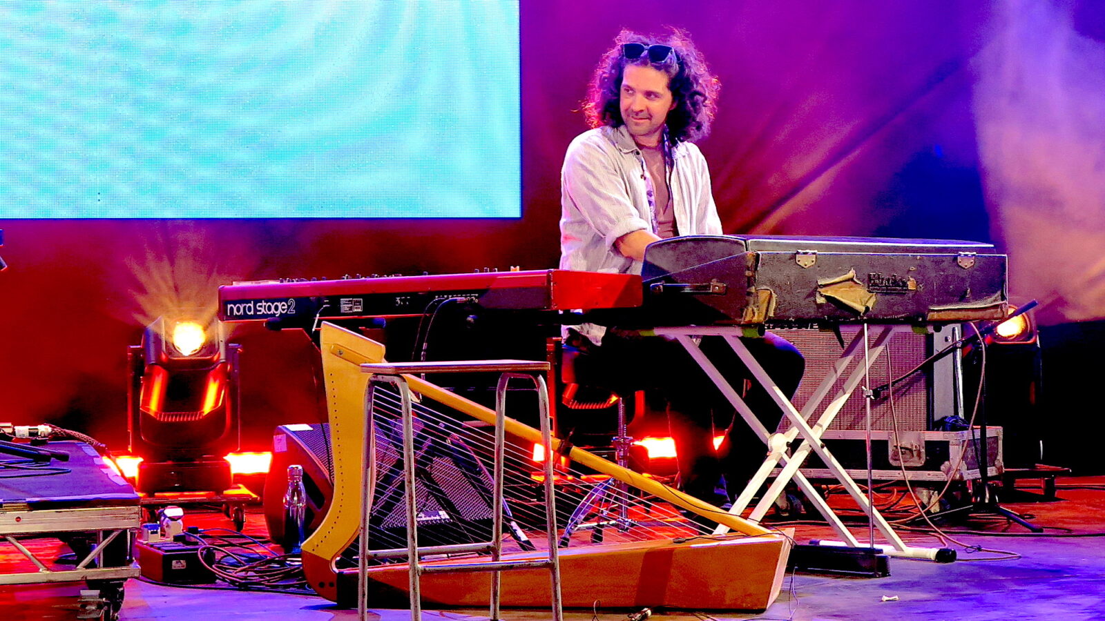 The music got an impressive preview (and a great reception) on the D&B Soundscape Stage at this year’s WOMAD. The stage full of musicians covered all aspects of Daniel’s music, from the lush cinematics of Sleepwalking and part of the String Quartet No 1 to the Zappa-ish big band sound of IC YANG!