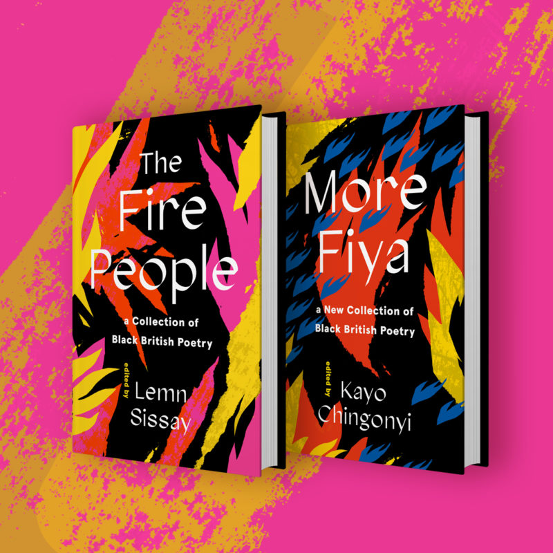 More Fiya (ed. Kayo Chingonyi) and The Fire People (ed. Lemn Sissay). Cover designs by Gill Heeley – image: Canongate Press