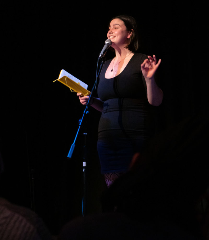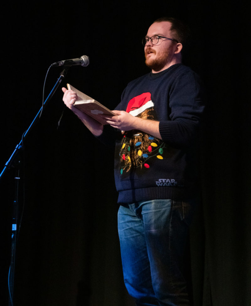 The first featured act of the evening is Callum Wensley. They open with a comedy piece entitled In Which The Poet Personifies Rain And Tries Not To Be Too Sad About It, which charmingly weaves its way through a catalogue of familiar instances of rain arriving at precisely the time it is least welcome.