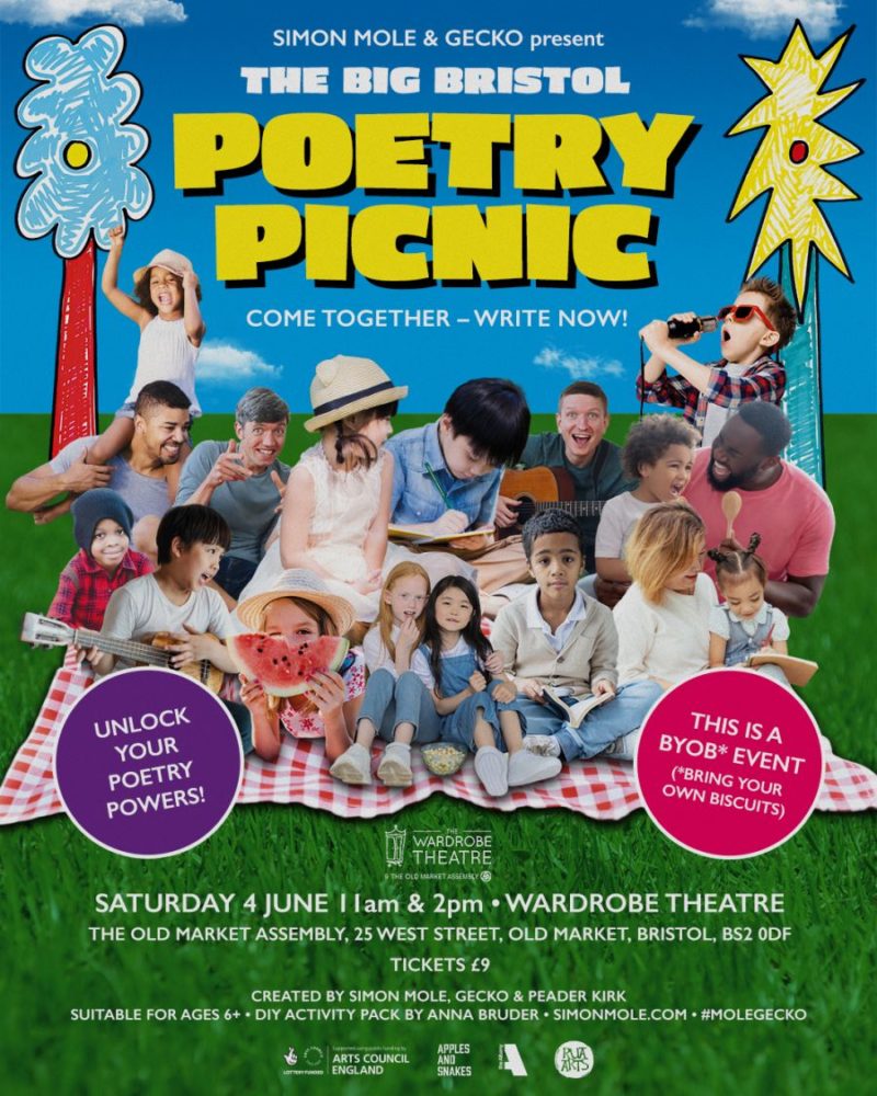 Simon Mole & Gecko present: The Big Bristol Poetry Picnic (recommendation 6+) at The Wardrobe Theatre on June 4 at 11am and 2pm. Tickets are available at www.thewardrobetheatre.com.