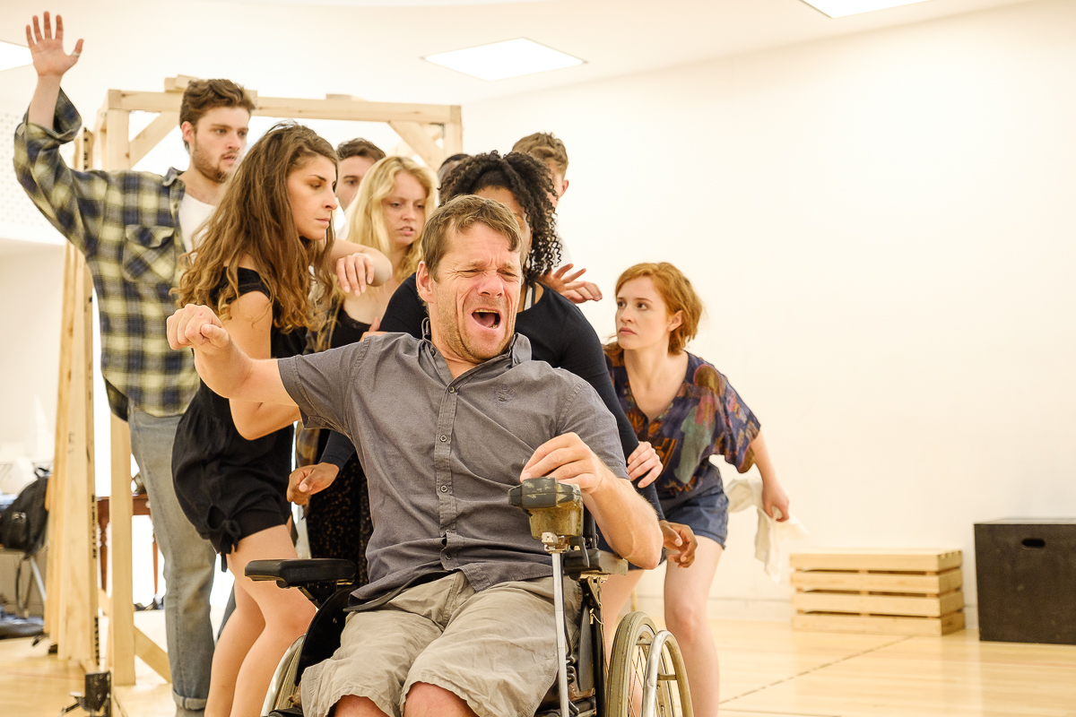 ‘The Elephant Man’ rehearsals: Jamie Beddard and graduating students from Bristol Old vic Theatre School. Pic: Alistair Campbell