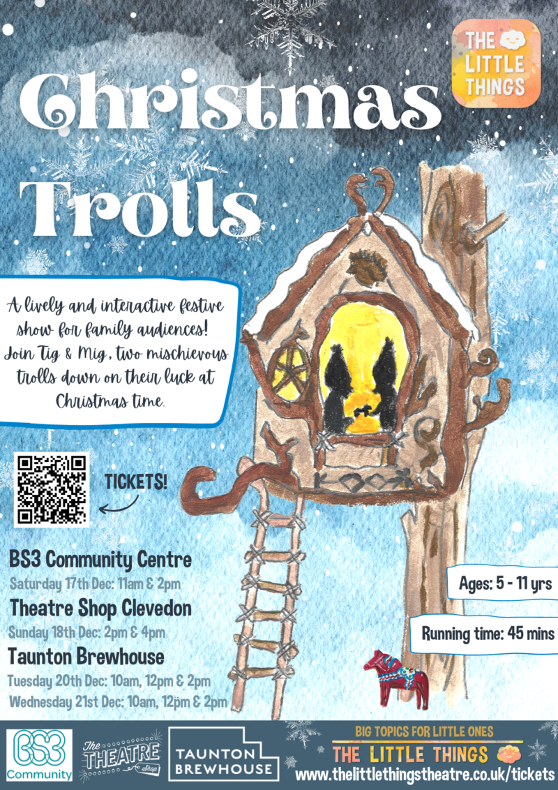 Christmas Trolls (age recommendation 5-11, though younger/older siblings are welcome) is at The Southville Centre on December 17 at 11am and 2pm and The Theatre Shop, Clevedon on December 18, at 2pm and 4pm. Ticket links for all shows are available from www.thelittlethingstheatre.co.uk.