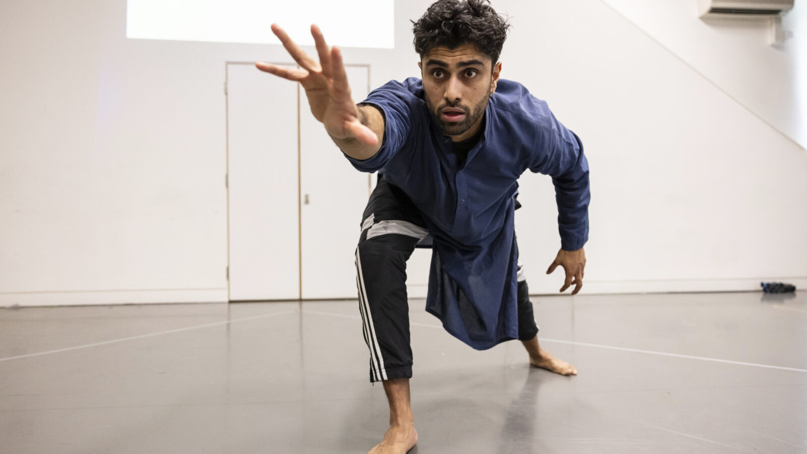 Azan Ahmed in rehearsal for 10 Nights – photo: Catherine Frawley