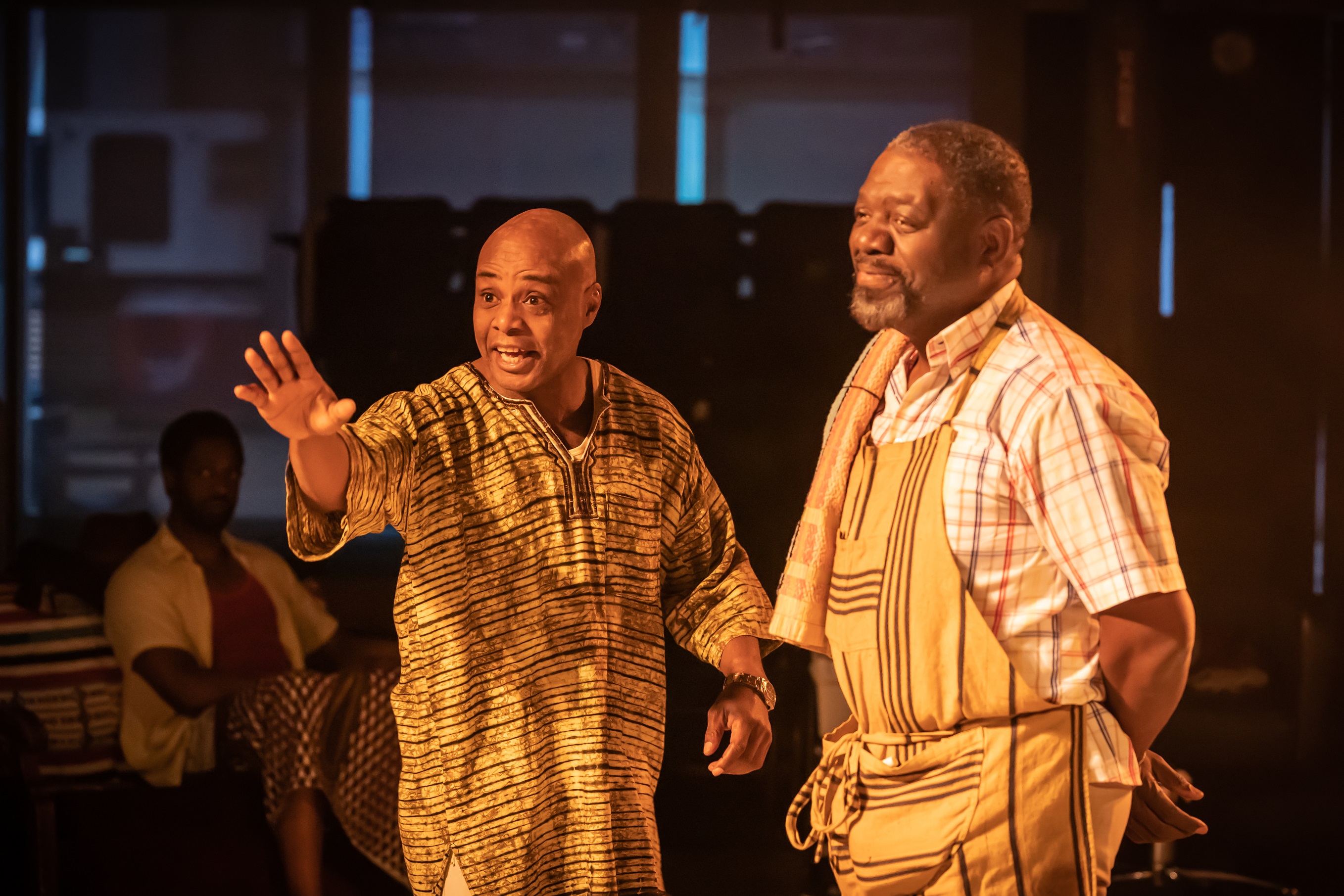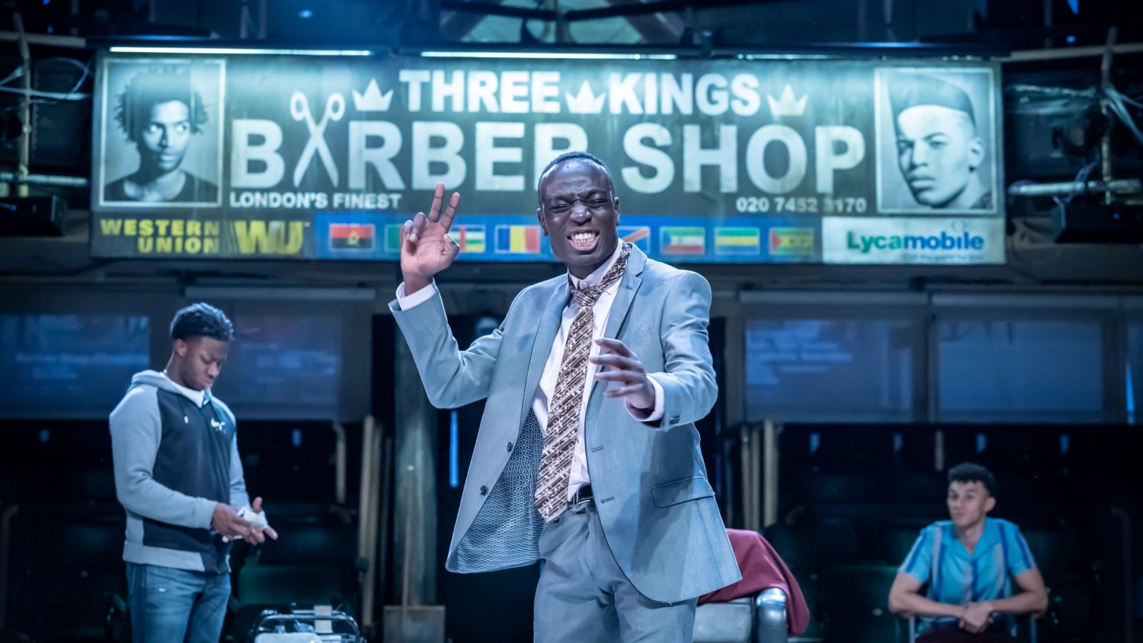 The play is set in six different barber shops. The Three Kings shop, in London, is the main focus, and then the action crosses to different shops across Africa. It’s such an ensemble piece as there are no blackouts or elaborate set moves. The 12 of us change set and costume in scene changes, moving sofas and generators while singing, dancing and occasionally stumbling! It’s so much fun to do!