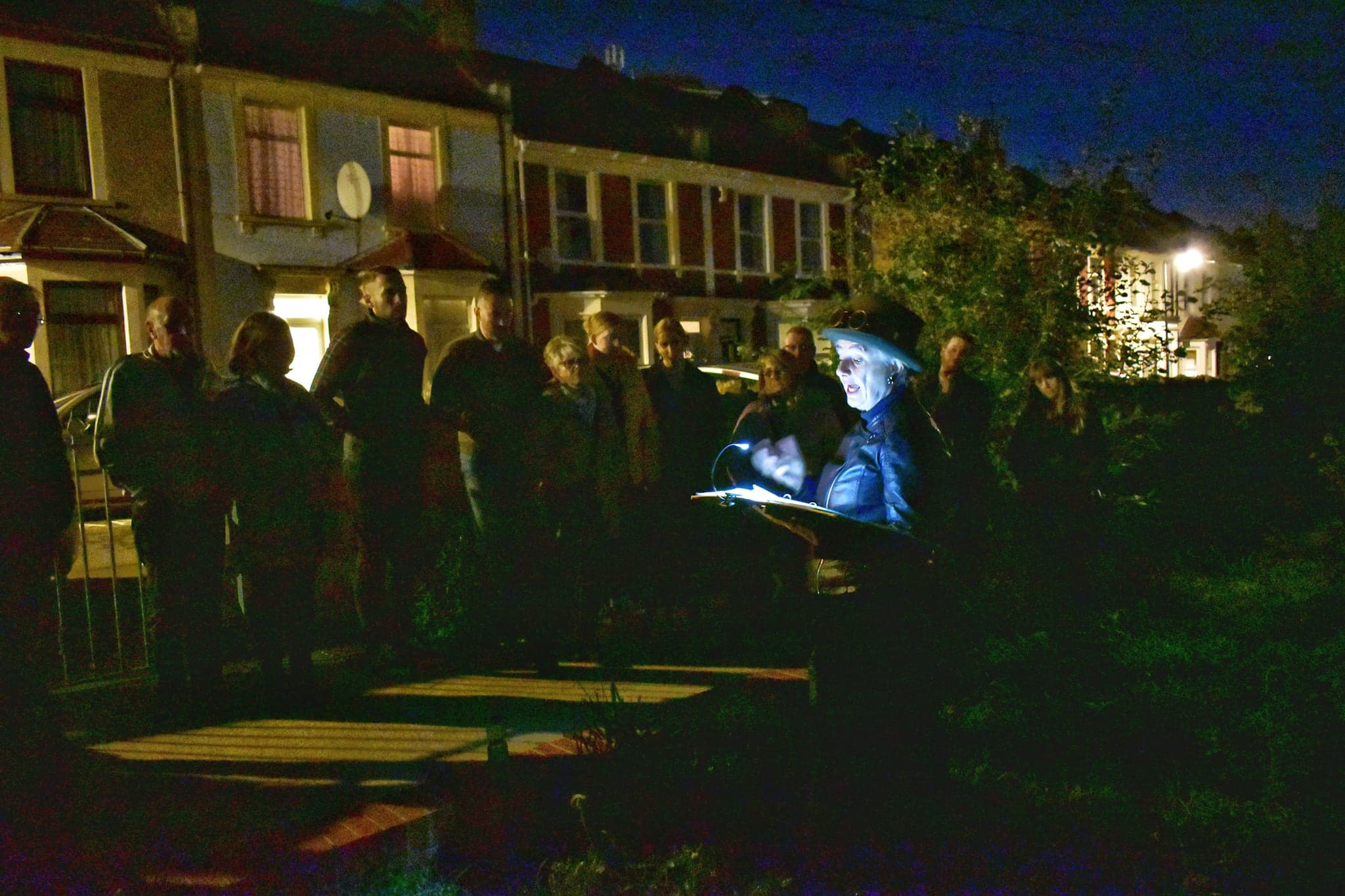 Show of Strength founder Sheila Hannon leads the walking tour around Bedminster’s dark past (and several of its historic boozers). Pic: Zuleika Henry