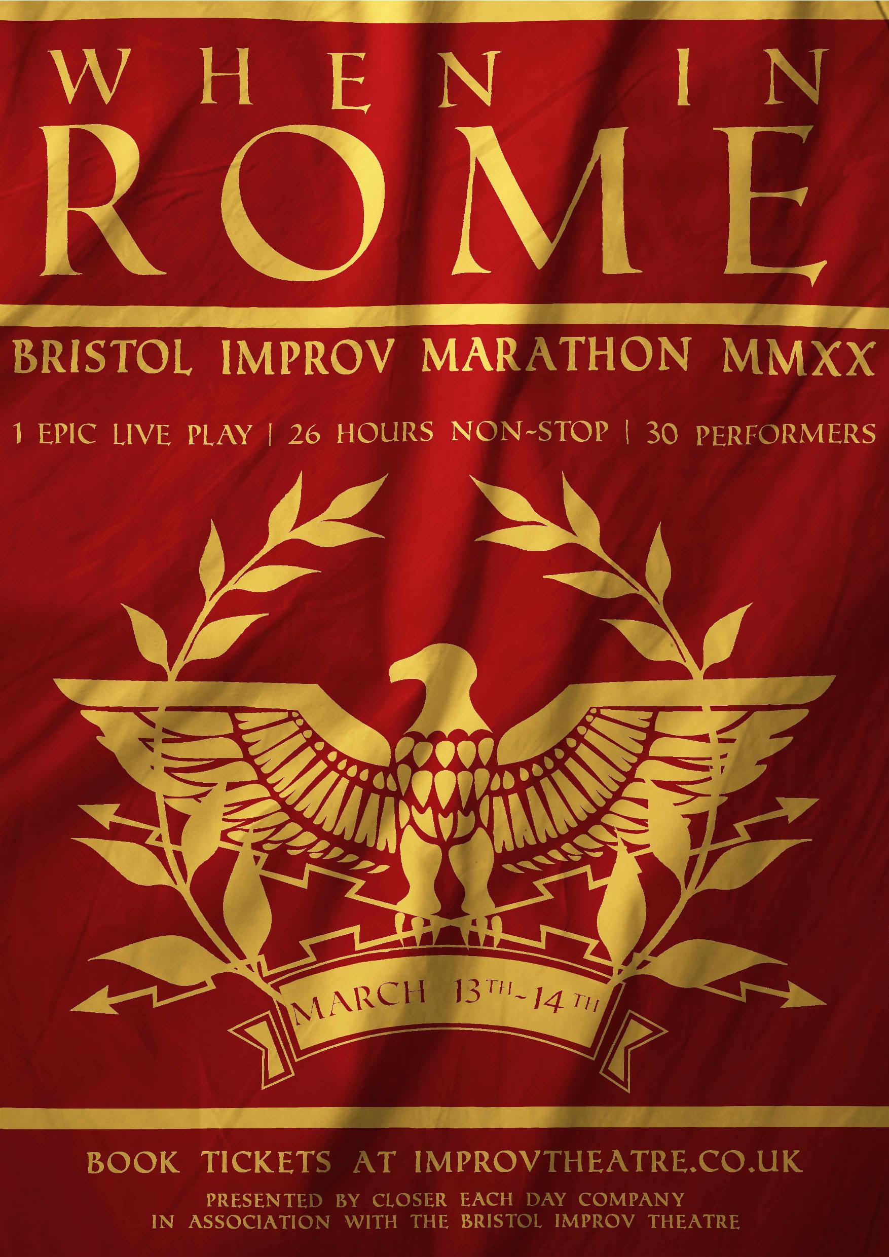 Bristol Improv Marathon: When in Rome takes place at Bristol Improv Theatre from March 13, 8pm to March 14, 10pm (non-stop, watch as much as you like). For more info and to book tickets, visit improvtheatre.co.uk/event/marathon2020
