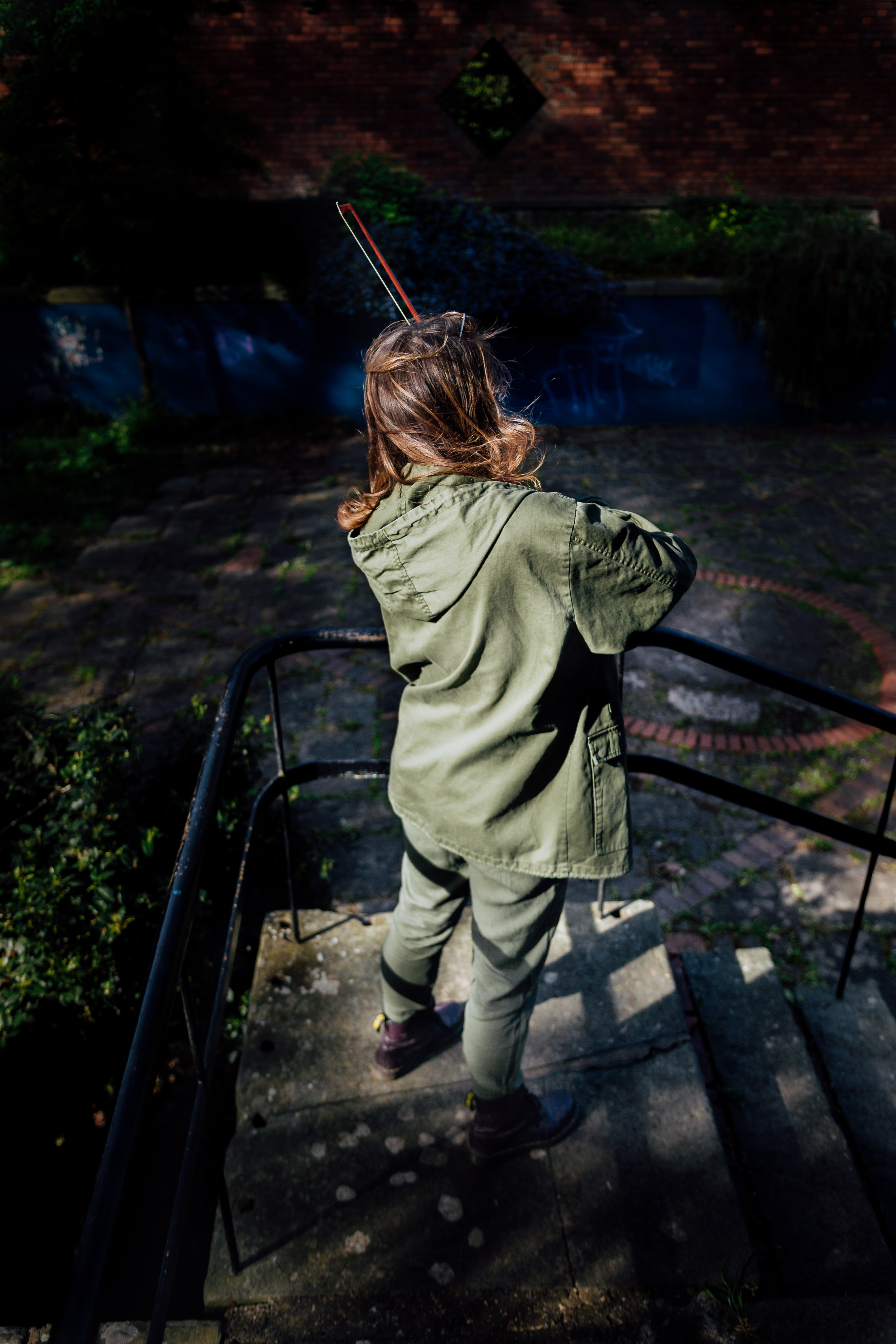 The space feels very theatrical. The walkway around the pool and the steps down into it offer different height options, plus a natural ‘amphitheatre’ feel. It also provides us with our potential balcony, plus various natural and man-made barriers for Romeo to clamber over to reach Juliet. Furthermore, the whole place (on a sunny day!) could be an old Italian piazza that has been left to nature.