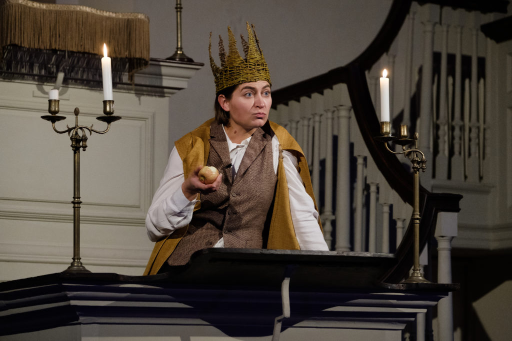 It is particularly present in the character of Rumpelstiltskin, with the dark shadowy corners and the wooden railings and pulpit which swell and shrink in the candlelight really influencing how we decided to bring his character to life. There is also a real warmth to the building, which we wanted to resonate throughout the play.