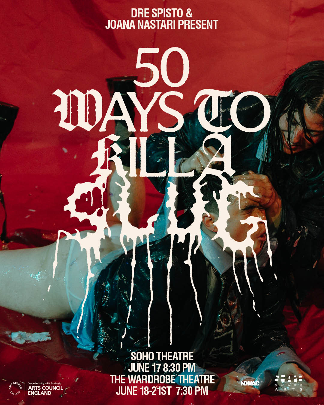 The show is riotous, funnier than probably you’d expect for a piece whose emotional origin is likely anger, and about as suggestive and evocative as theatre can possibly be. The squelching, spitting, biting, slapping – I found myself grinning, transfixed, whilst some around me heaved. If theatre’s purpose is to make us feel something, 50 Ways To Kill A Slug is the gold standard.