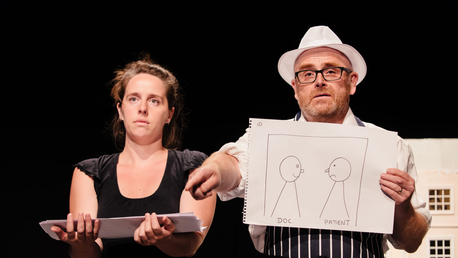 This is not to suggest that any hommage to postmodern fiction comes at the expense of accessibility here. Indeed, the opening 20 minutes are characterised more by the DIY musical hall electronics of John Shuttleworth and Victoria Wood’s gift for lewd middle-aged comedy, than any sense that the boundaries between the fictional and the real were about to disintegrate.