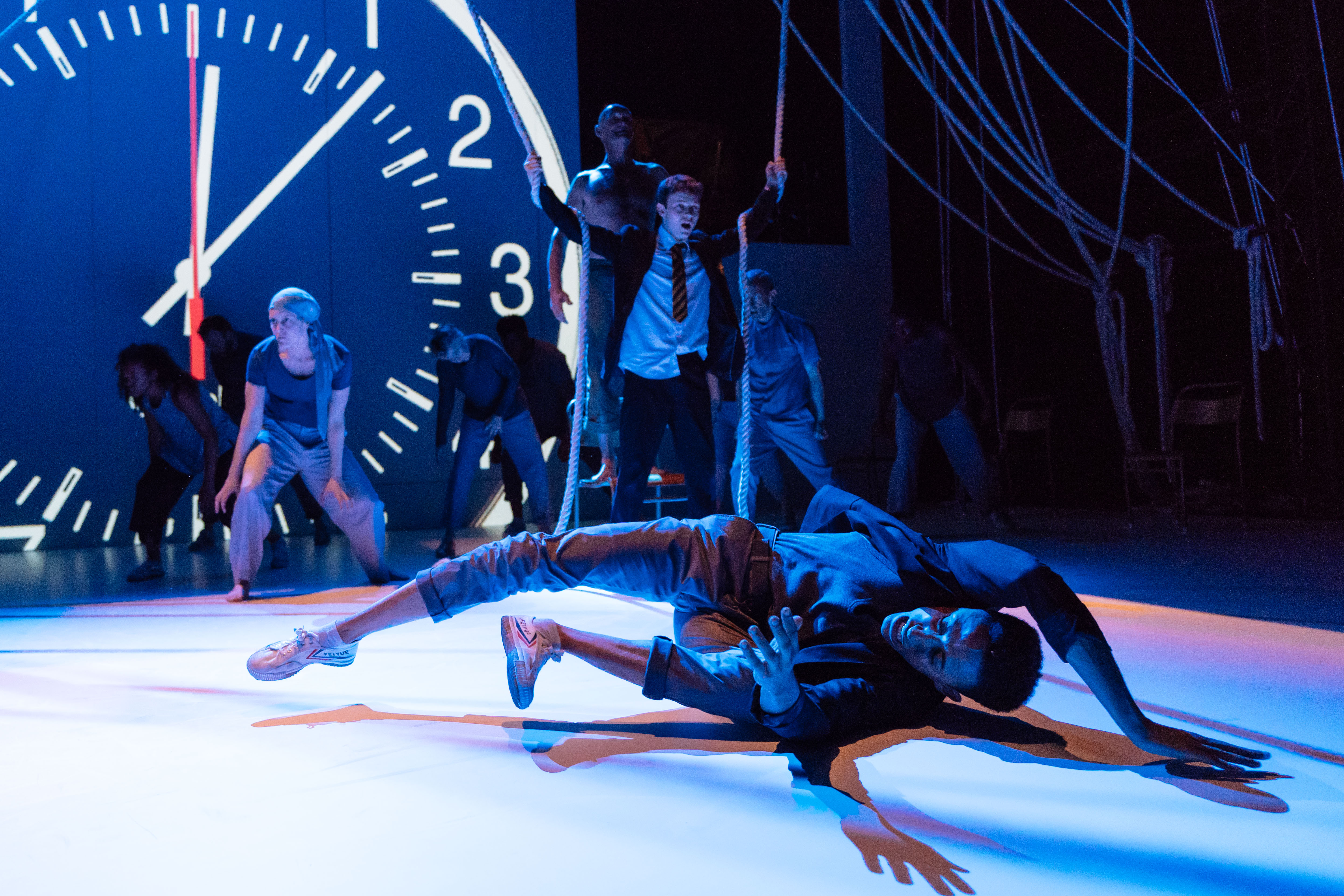 The ensemble transform Michael Vale’s striking set design, from bedroom to classroom, hospital to car to garden with effortless style and dynamic theatricality and craftsmanship. Every member of cast is a crucial cog in the wheel or root in the tree for this production. The physical language of the show is deeply embedded in the veins of the show and is both driven and complemented by the stunning soundtrack of Bowers Benji and Will.