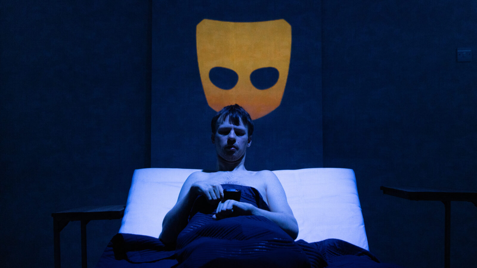 We begin with David on the phone to a sex-toy manufacturer, complaining about a product which is malfunctioning. Though he has friends – including his terrarium-loving flatmate Jill (Amy Loughton) and his awkwardly inclined care assistant Derek (Matt Aleigh) – David is lonely. What he yearns for is a physical connection, and so he sets about diving into the world of GRINDR.