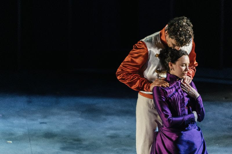 The one element of the story that does truly feel three-dimensional is the relationship between Anna and Vronsky. This is achieved partly through the choice not to make Vronsky an archetypical dashing cavalry officer. Akondoto’s Count is a bumbling young man who is simply utterly besotted with Anna, and she with him.