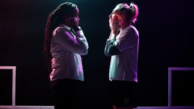 Chanel Waddock plays a convincing football goalie named A, who is desperate to make her mum proud after losing her dad while Shannon Hayes plays a young black woman named B, directly experiencing the effects of tokenism in the corporate workplace.