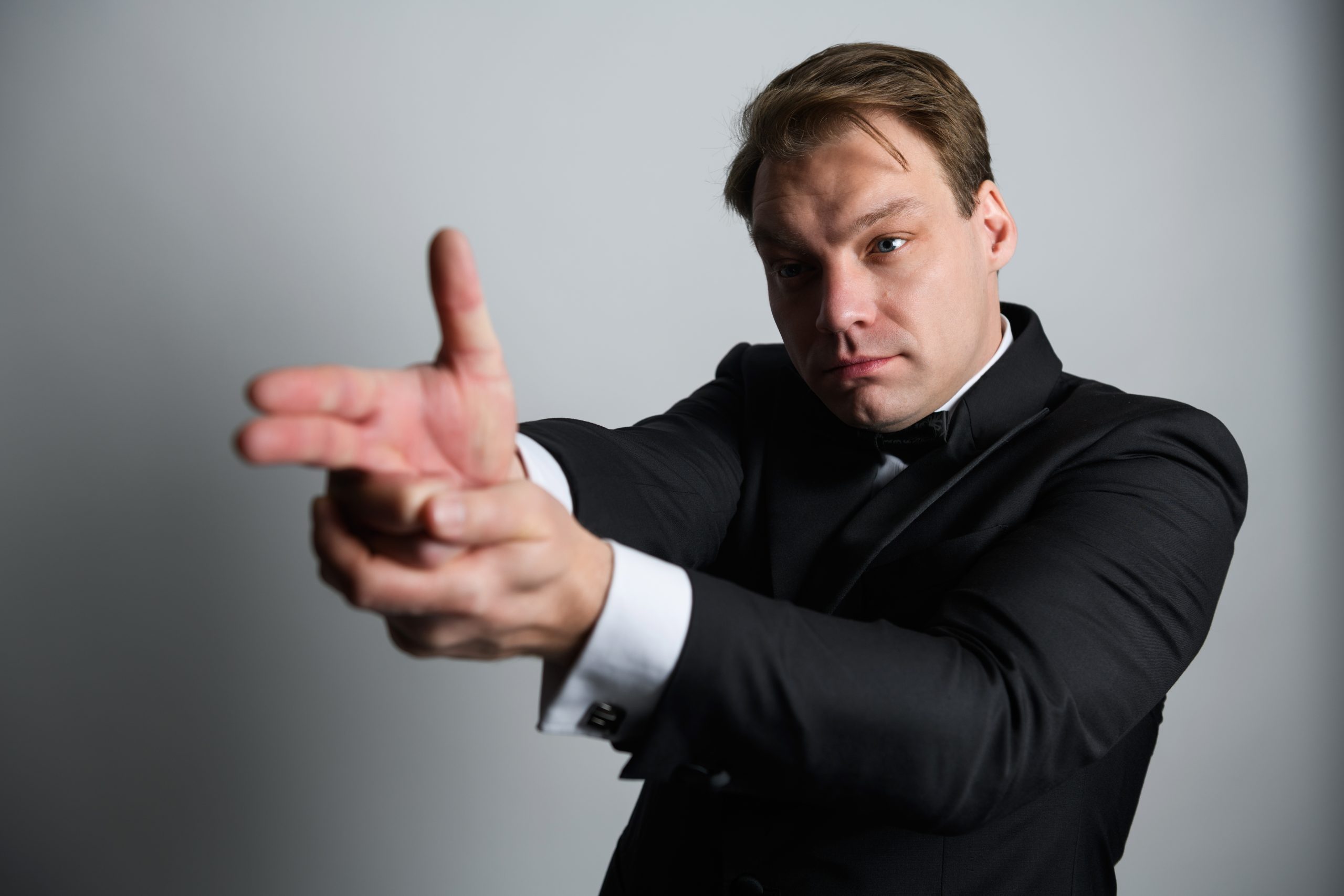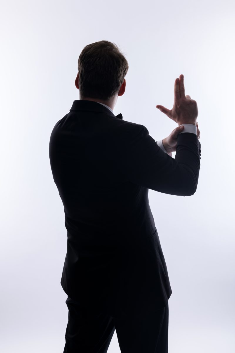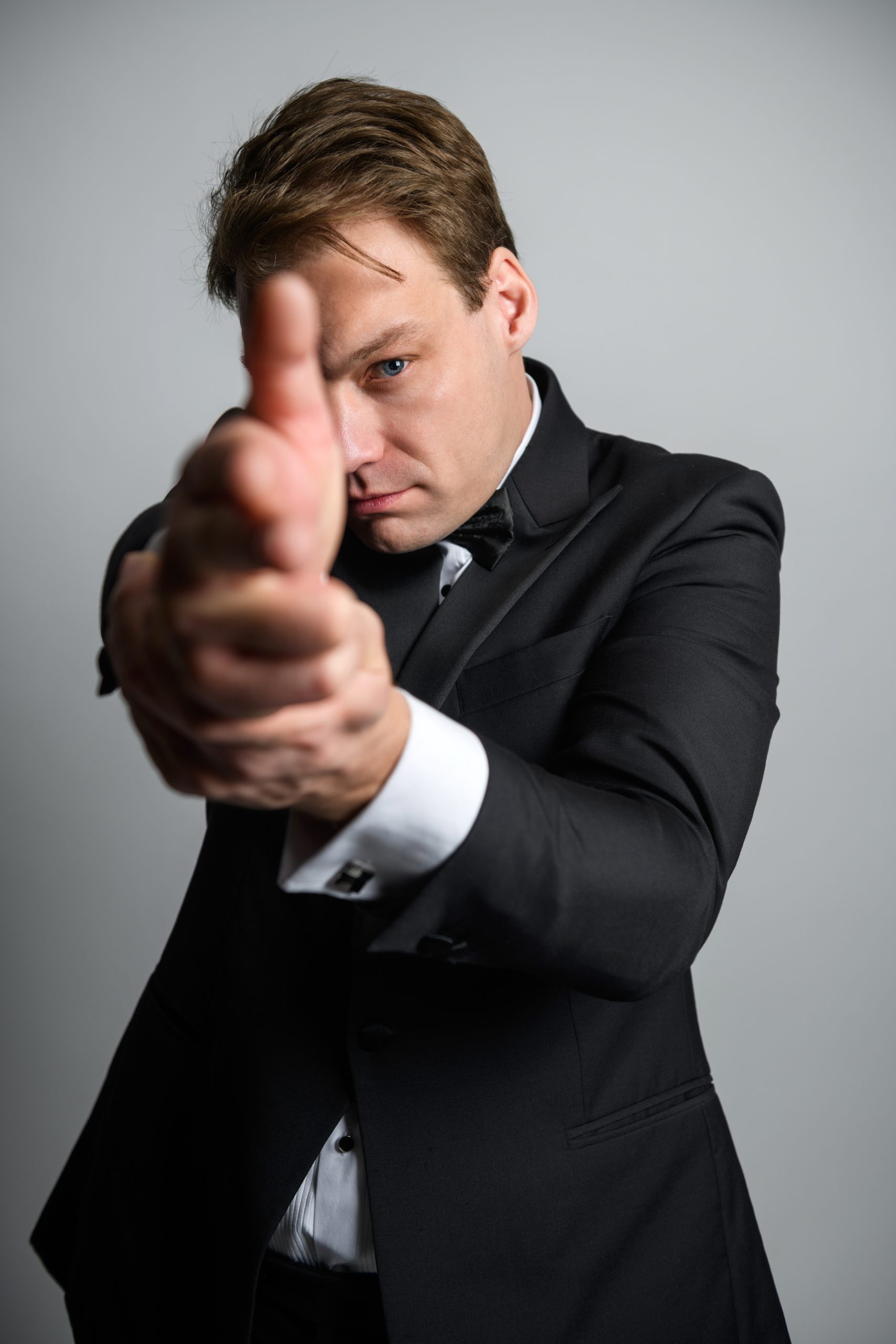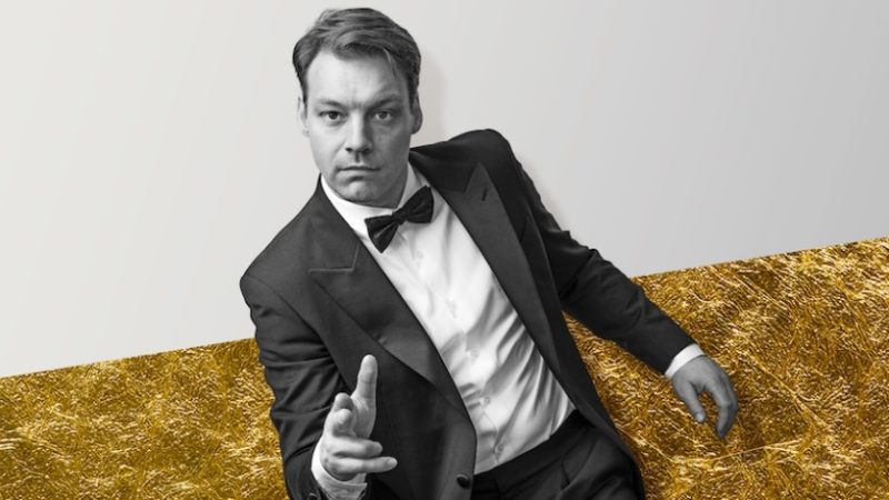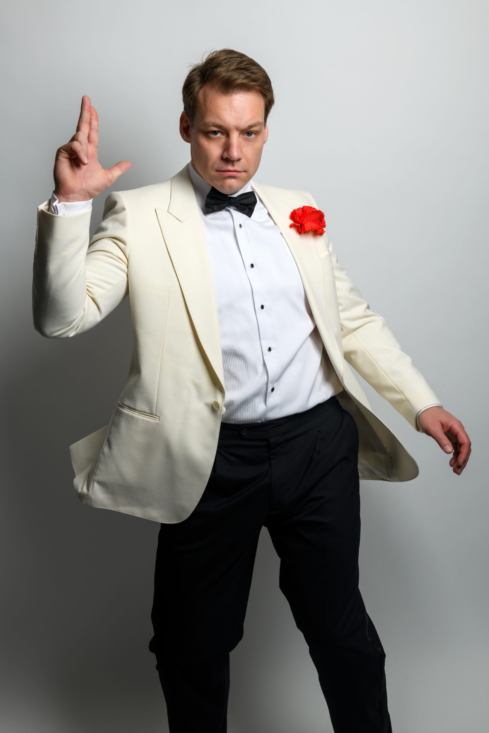 With a simple set comprising one black wooden chair and a clothes rail containing six jackets, Blake takes us on a journey through the 60 years of Bond in all his incarnations, touching on the toxicity of masculinity, misogyny, sex, and cheesy repartee.