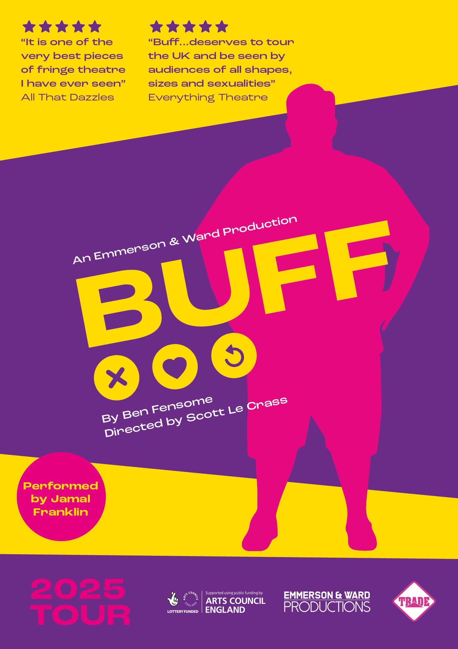 Longlisted for the Bruntwood and Papatango prizes, and a finalist for the Perfect Pitch award for musical theatre book writing, Buff is writer Ben Fensome’s first show to go on a national tour.