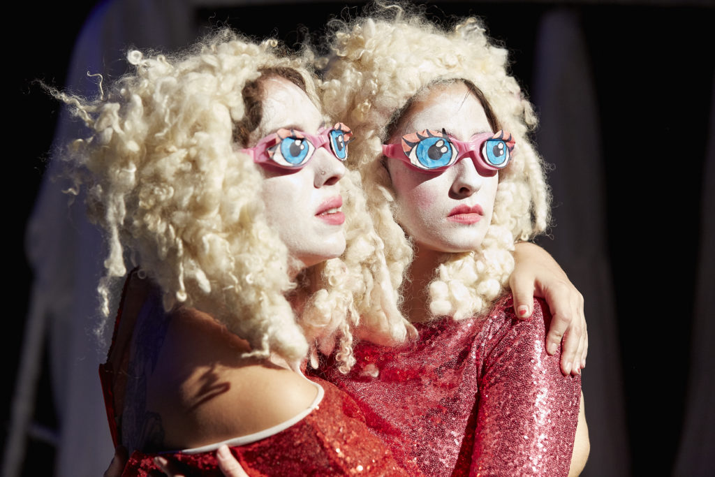 The tone of 90% of the show is joyful exuberance. As Mothersole and Biscuit say, “this is our mainstream crossover hit!” However, this dominant tone lends power to one of the most moving sections where, through an exhausting montage of interview clips obsessing over Dolly’s body, we effectively hear the voice of the male gaze. As the audio plays, the performer’s bodies droop, and we feel the joy and colour drain from the room. I feel a sense of shame and anger creep over me as I think about all the received opinions I have of Dolly Parton, and how that leering, conservative voice gets inside us all and polices the boundaries of what’s acceptable to do with our bodies.