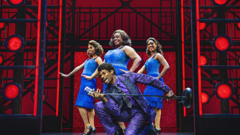 One of the joys of this musical is its insistence on giving big moments to its non-main characters. Deena Jones and Lorrell Robinson may start out as the Dreamettes’ backing singers, but each becomes her own distinct person as the group grows up. Natalie Kassanga as Deena becomes kind-hearted and mature, able to keep her own council and a professional through and through. Her duet with Dennis (a love ballad that is, refreshingly, about friendship rather than romance) is a stand out moment in the show.