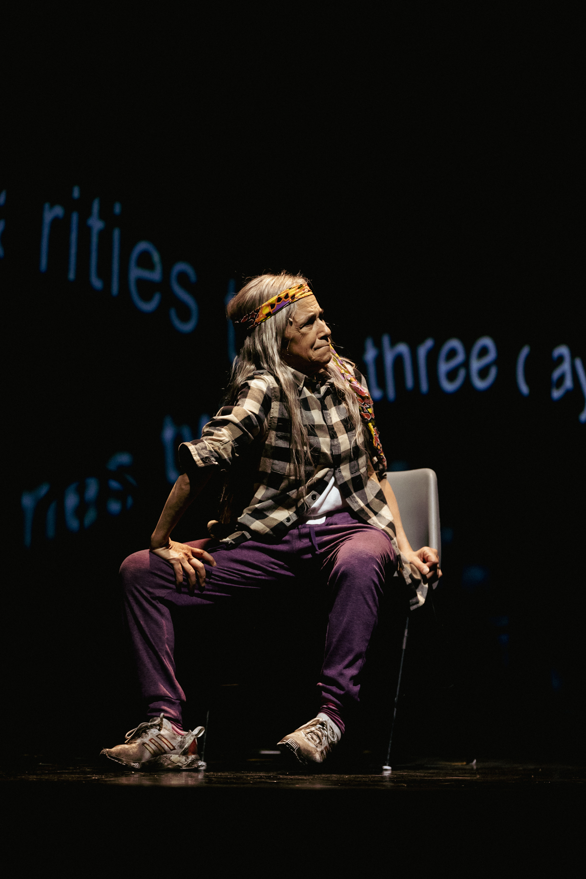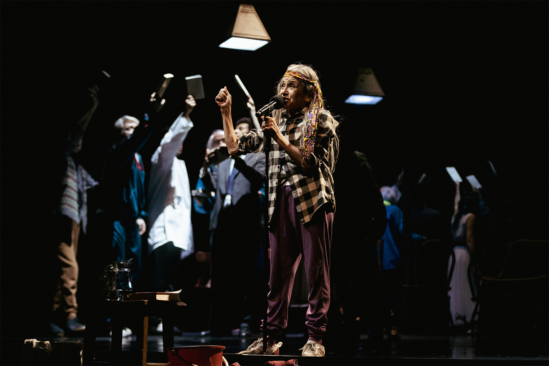 Kathryn Hunter as Janina Duszejko in Drive Your Plow Over the Bones of the Dead, Complicité, Bristol Old Vic (2022) – photo: Camilla Adams
