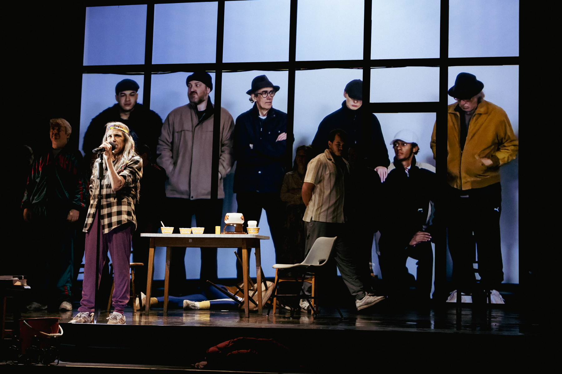 The ensemble, who often have their black-coated backs to the audience, themselves become part of the world from which Janina stands out in stark relief, aware of the urgency that propels her forward.