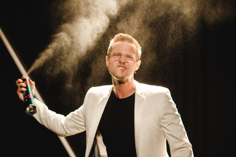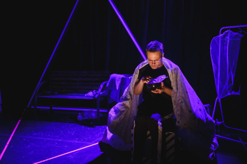 The show begins the moment the audience walks in, with Nathaniel in his room apologising for the mess from the night before.