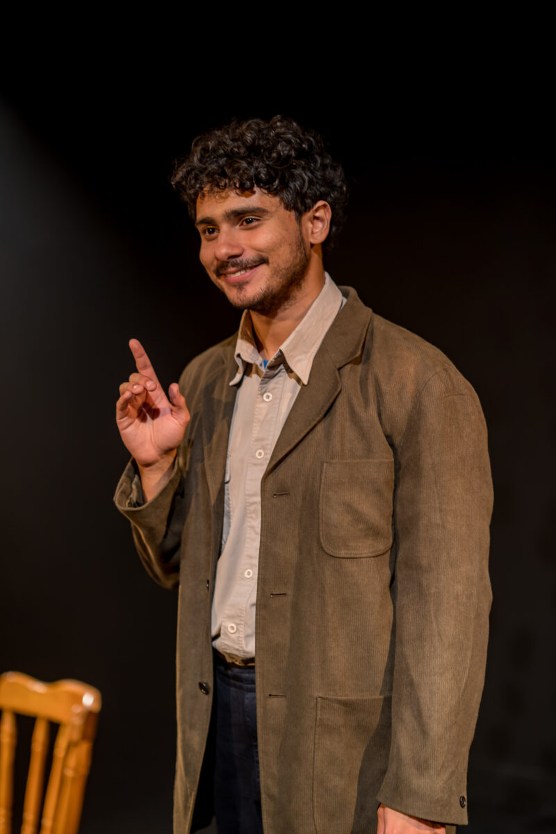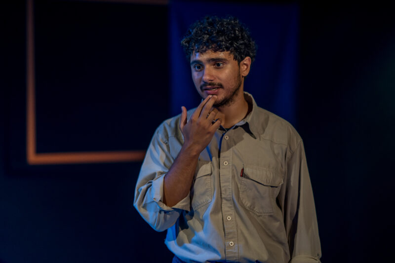Hasna’s skill at morphing from one character to the next is palpable, no more so when his body is seemingly punctuated by a shuddering shedding of a skin as he returns once more to playing himself. Back as Bilal, we sympathise with his irritation at being stuck in Luton Airport waiting for the 4am EasyJet plane his father has insisted on booking since it costs £10 less.