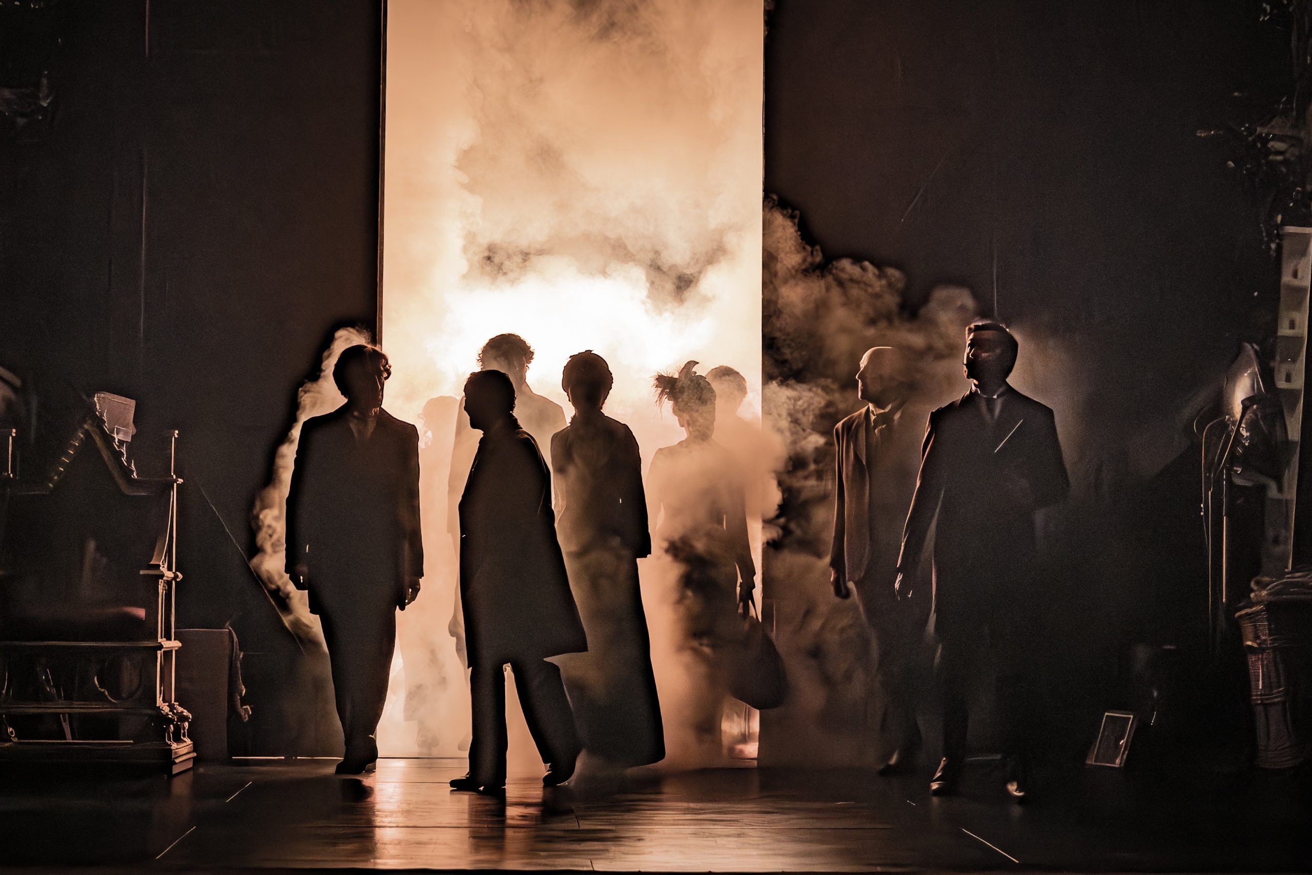 I repeat, it is delicious and a joy to see Fiennes and Raison in action. Their performances are excellent. I feel for Ruby Ashbourne Serkis (Terry’s daughter Edy Craig) and Jordan Metcalfe (her son, Teddy Gordon Craig) – their parts are sketchy although big, and they end up as little more than the Chorus. Without them and the rest of the company, Hare would have been forced to create drama – although we’d lose 11 from the company, and a massive but funny Russian Lear set.