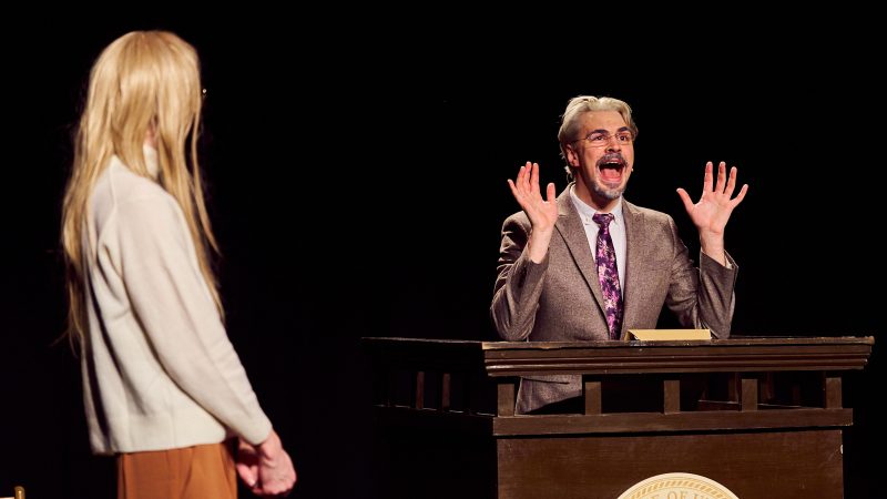 As I re-read articles about the ins and outs of the trial for this review, it was shocking how much of the silliness lined up with real events – although it seemed a shame the play didn’t mention how Sanderson argued he could no longer enjoy wine tastings as result of the accident, or Paltrow offering ‘treats’ as a thank you to the bailiffs.