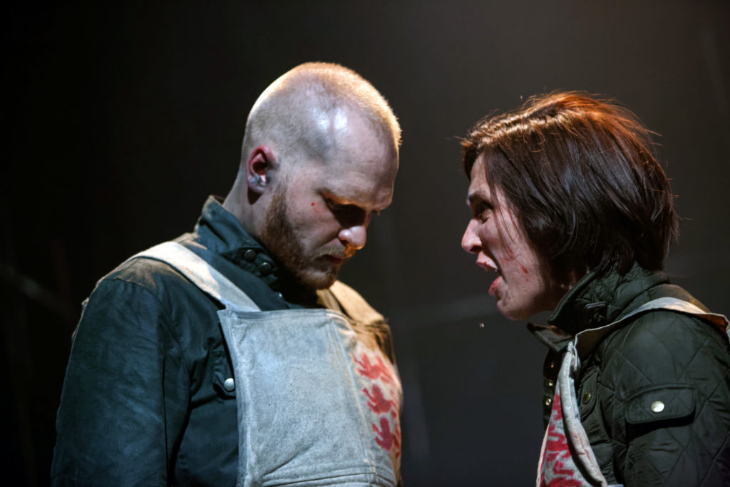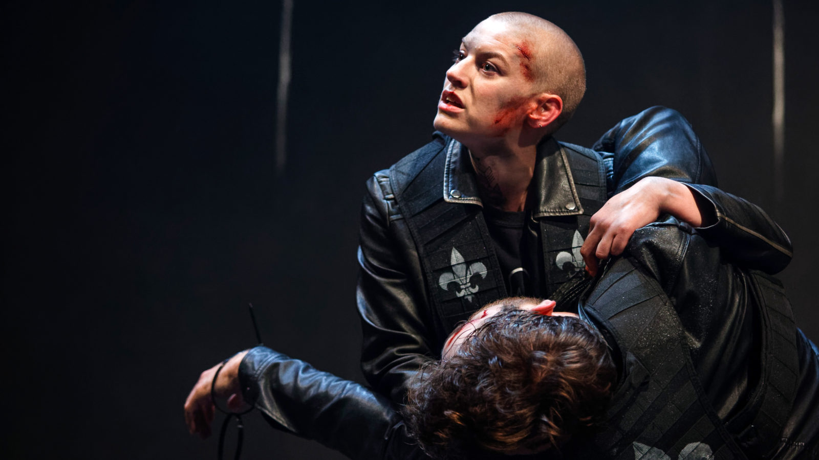 The routinely comic scene of Katharine learning the English for nails, hands and elbows in the privacy of her own room is here played with devastating effect, in full view of Henry, over the body of Orleans (Zachary Powell). A cross between Joan of Arc and Tank Girl, Heledd Gwynn commands every moment she is on stage and provides the perfect foil for Hall’s Henry.