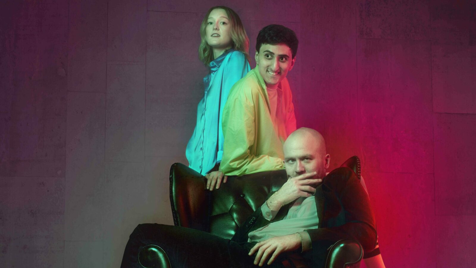 It’s a Motherf*cking Pleasure, FlawBored – Chloe Palmer (back), Aarian Mehrabani (centre – who was replaced on the night by Phillip Olagoke) and Samuel Brewer (front) – photo: Guy Sanders