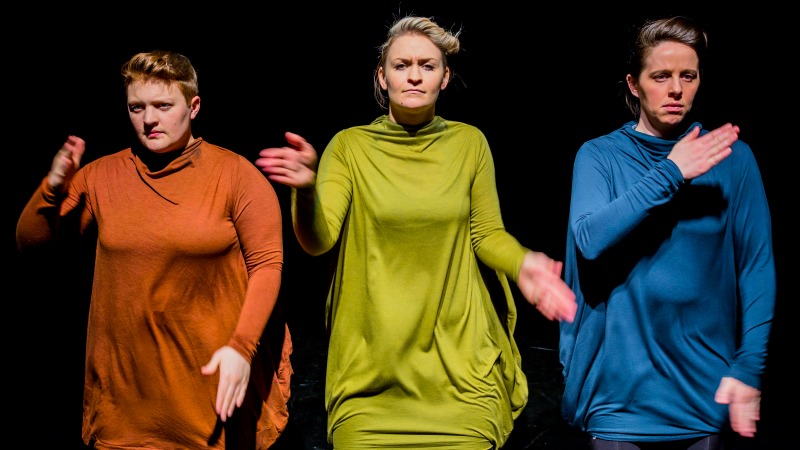 Instead, the show is a piece of performance art which uses the human voice raised in song as just one of the tools – alongside physical theatre and a profound and brave use of extended silence and stillness – to create a mesmerising, discombobulating, nebulous assembly of sensations. In a series of almost random snapshots, three performers in simple shift dresses – Standen, plus fellow musicians Ellie Showering and Jannah Warlow – sketch out moods, emotions and the light and shade of life using the almost subconscious power of music and simple image. It’s more reminiscent of the David Glass Ensemble’s powerful mime or a Laurie Anderson performance than a cabaret night.