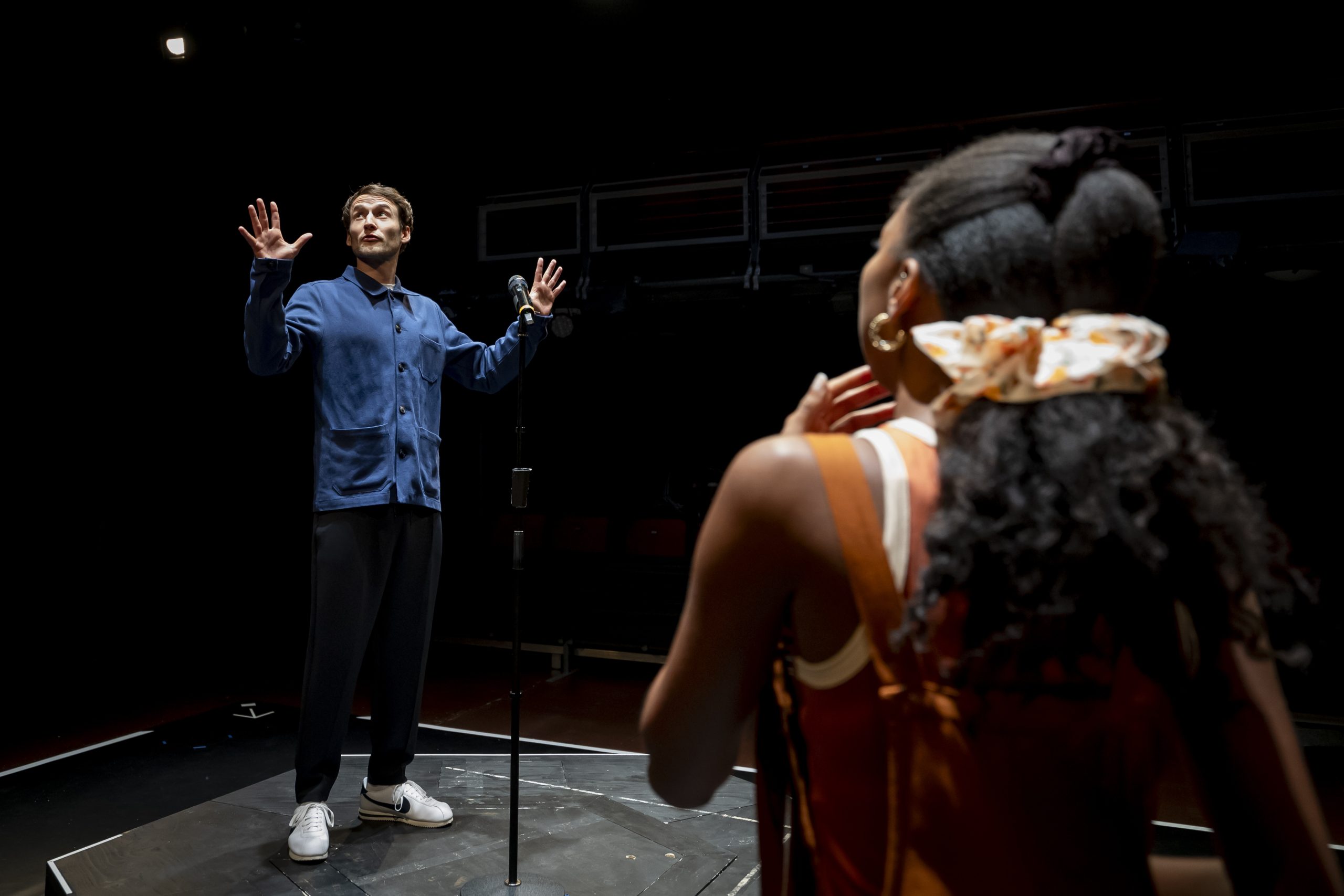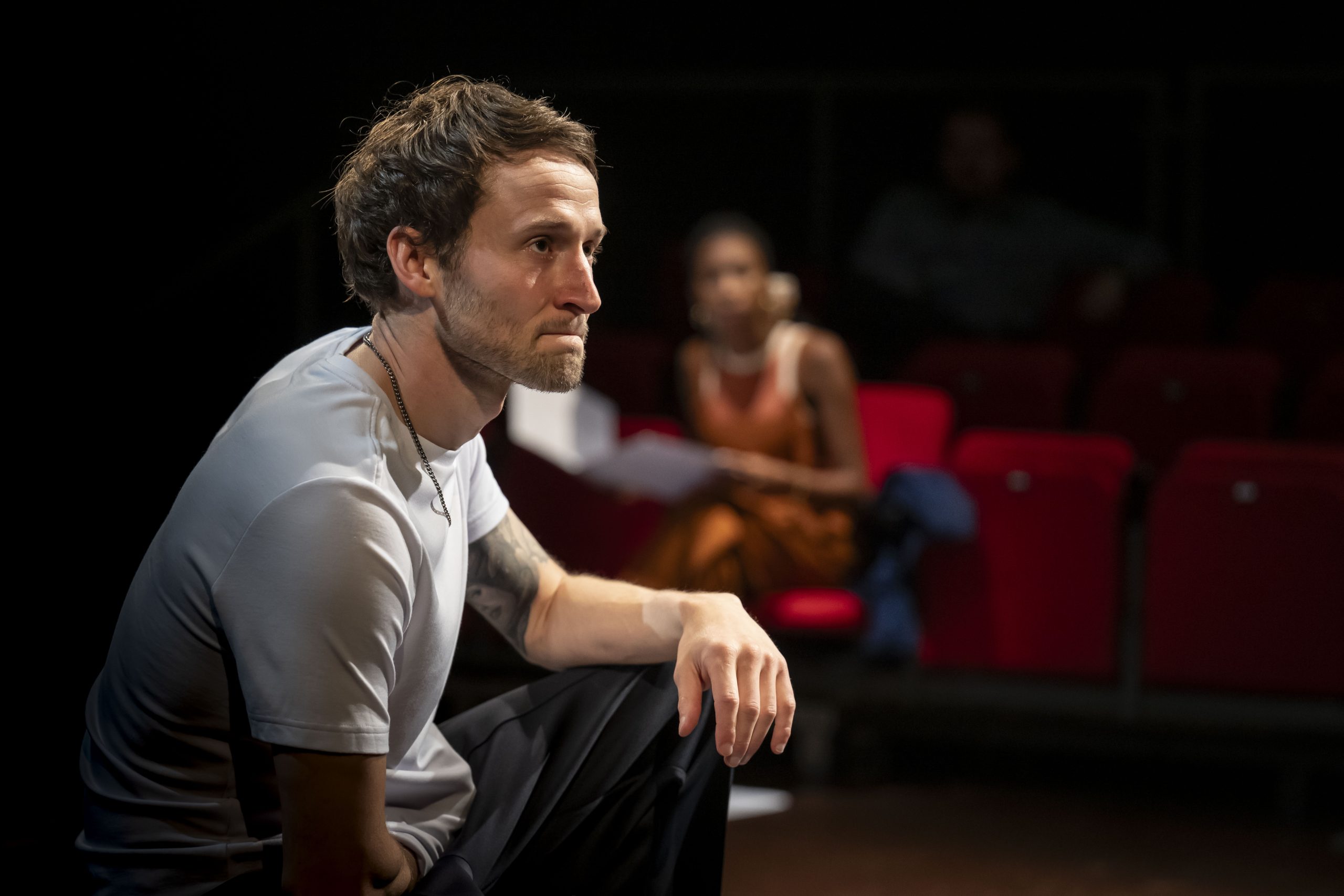 As Abigail writes the fictional story, featuring her character as badass Stacey, she comes into conflict with reality. Her brother, skilfully depicted by Samuel Armfield, fails to understand the point of paying for an expensive funeral for a mother who he believes didn’t approve of him. And he is dismissive of his sister’s artsy fartsy lifestyle. There is a wonderfully powerful and sincere scene when they have a stand-up argument. Each one of the actors’ characterisations rings true with Nicole Sawyer’s Abigail demonstrating a heart wrenching gangly, awkward powerlessness.