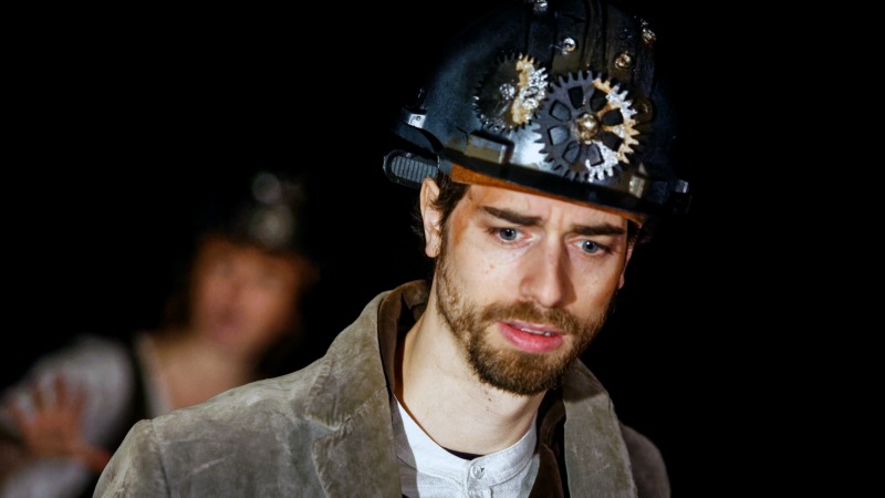 This is perforce an intimate production. The vault is only big enough for an audience of 12, and even then the actors are left with little more than a runway to perform on. Although the space itself is cavernously high, access is somewhat tortuous, and both audience and performers have to wear hard hats. It’s very different from a night out at the Hippodrome.