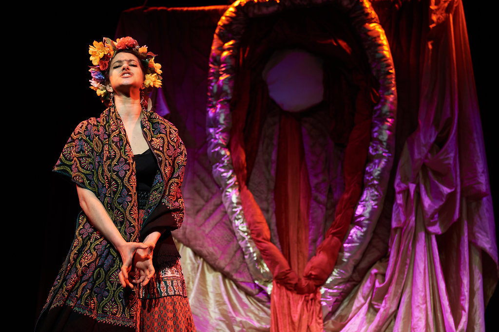 But the real star of the show is an enormous, well, cunt, which hangs at the back of the stage, parting, spurting and dispensing bouts of hedonistic wisdom in the person of Big Clit – played with delicious, devilish sensuality by Naomi Smyth, who at one point had us tonguing the air en masse.