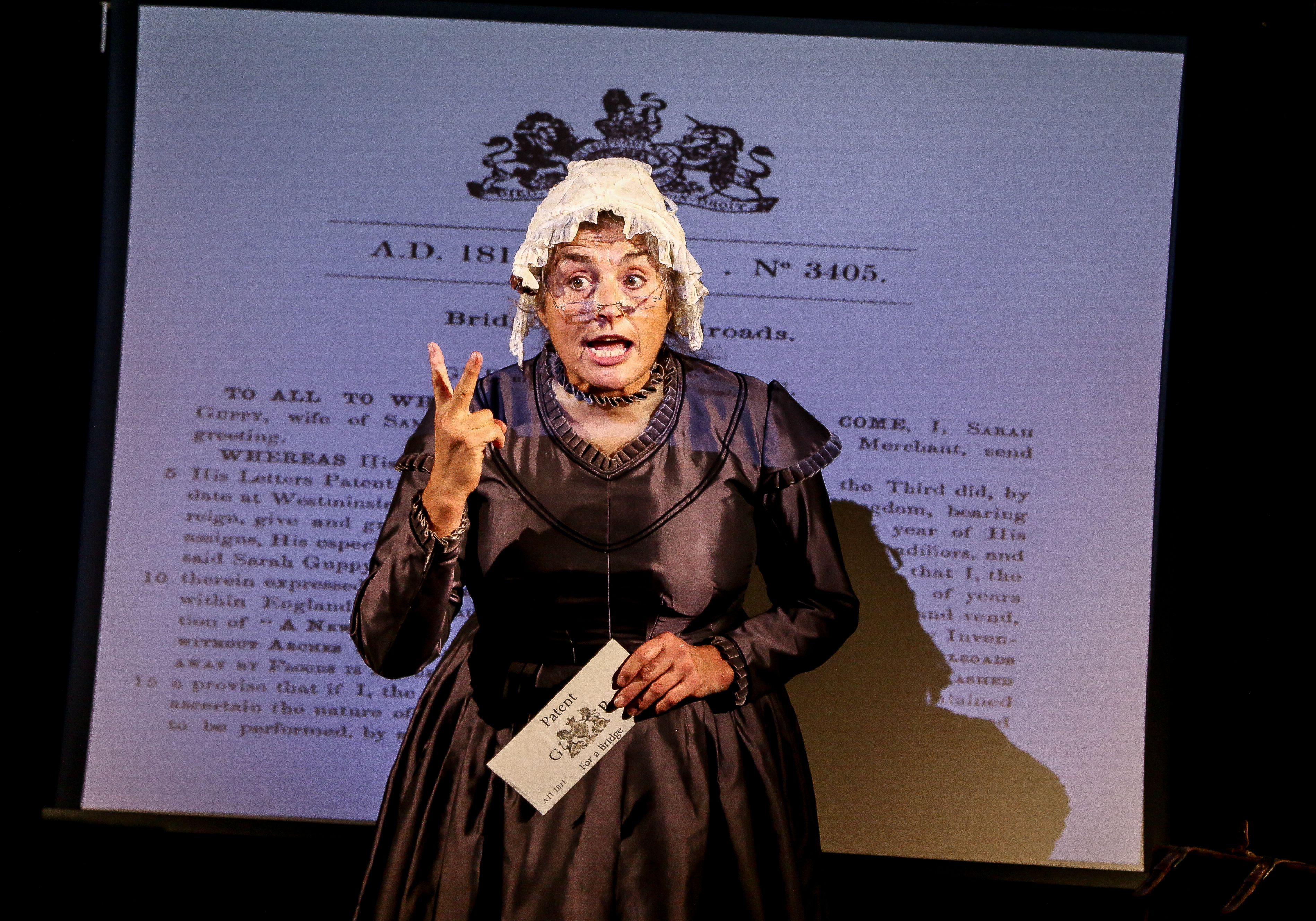 Show of Strength’s way of introducing us to the life and work of the startlingly under-recognised Bristol inventor, designer, engineer, environmental campaigner (deep breath), investor and mother-of-six Sarah Guppy (1770-1852), is to have the great lady herself up on stage, recalling her fascinating and eventful life.