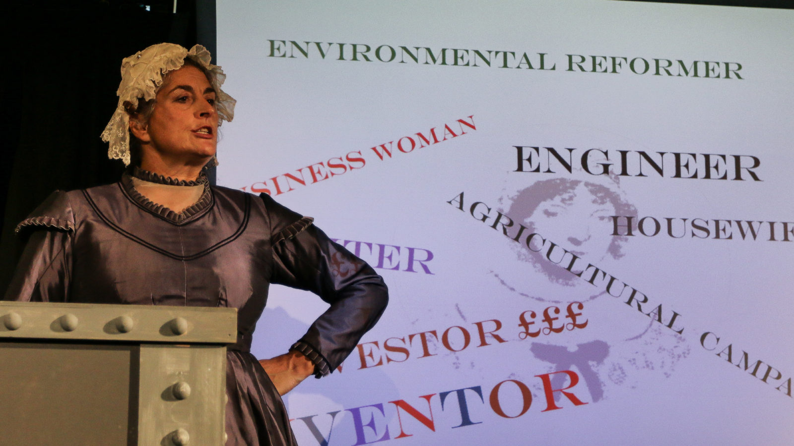 Show of Strength’s way of introducing us to the life and work of the startlingly under-recognised Bristol inventor, designer, engineer, environmental campaigner (deep breath), investor and mother-of-six Sarah Guppy (1770-1852), is to have the great lady herself up on stage, recalling her fascinating and eventful life.