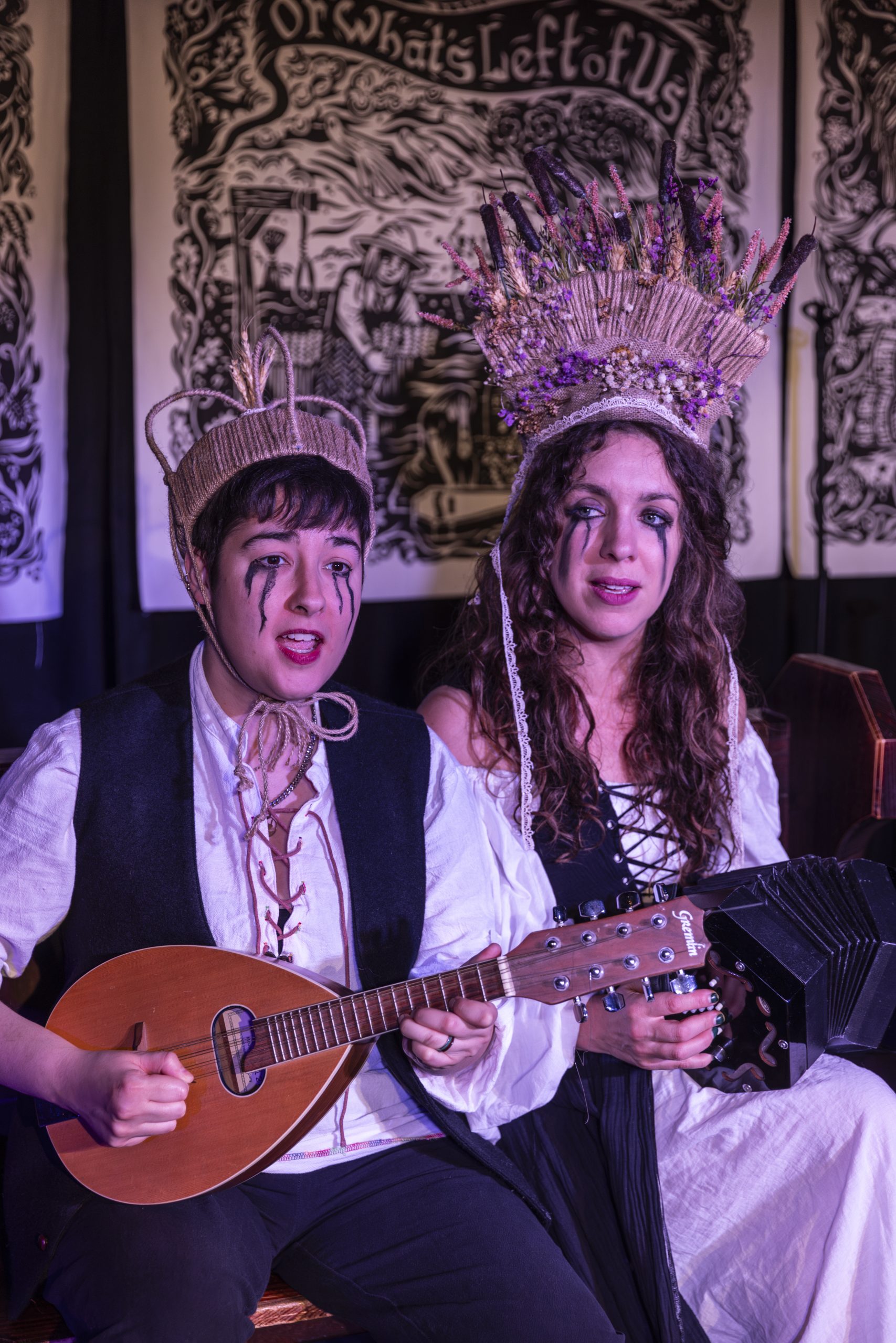 Interspersed with stories and close harmonies of elegiac folk songs – some dating back to the 1600s, Sh!t Theatre’s own narrative of “a bad year” focuses on their struggle to find a way still to be themselves; how to find routes to expression in the sudden absence of those whose presence had once felt so fundamental.