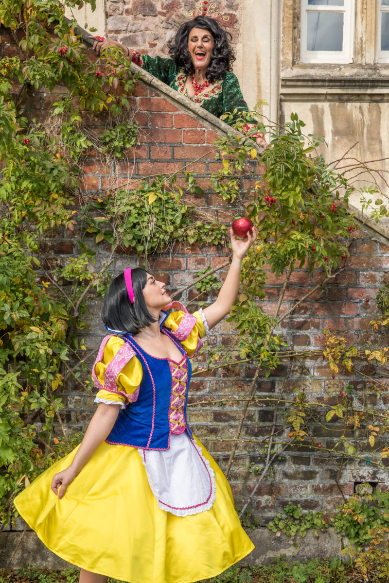 Charlotte Haines as Snow White and Lesley Joseph as Queen Dragonella – photo: Stephen Lewis