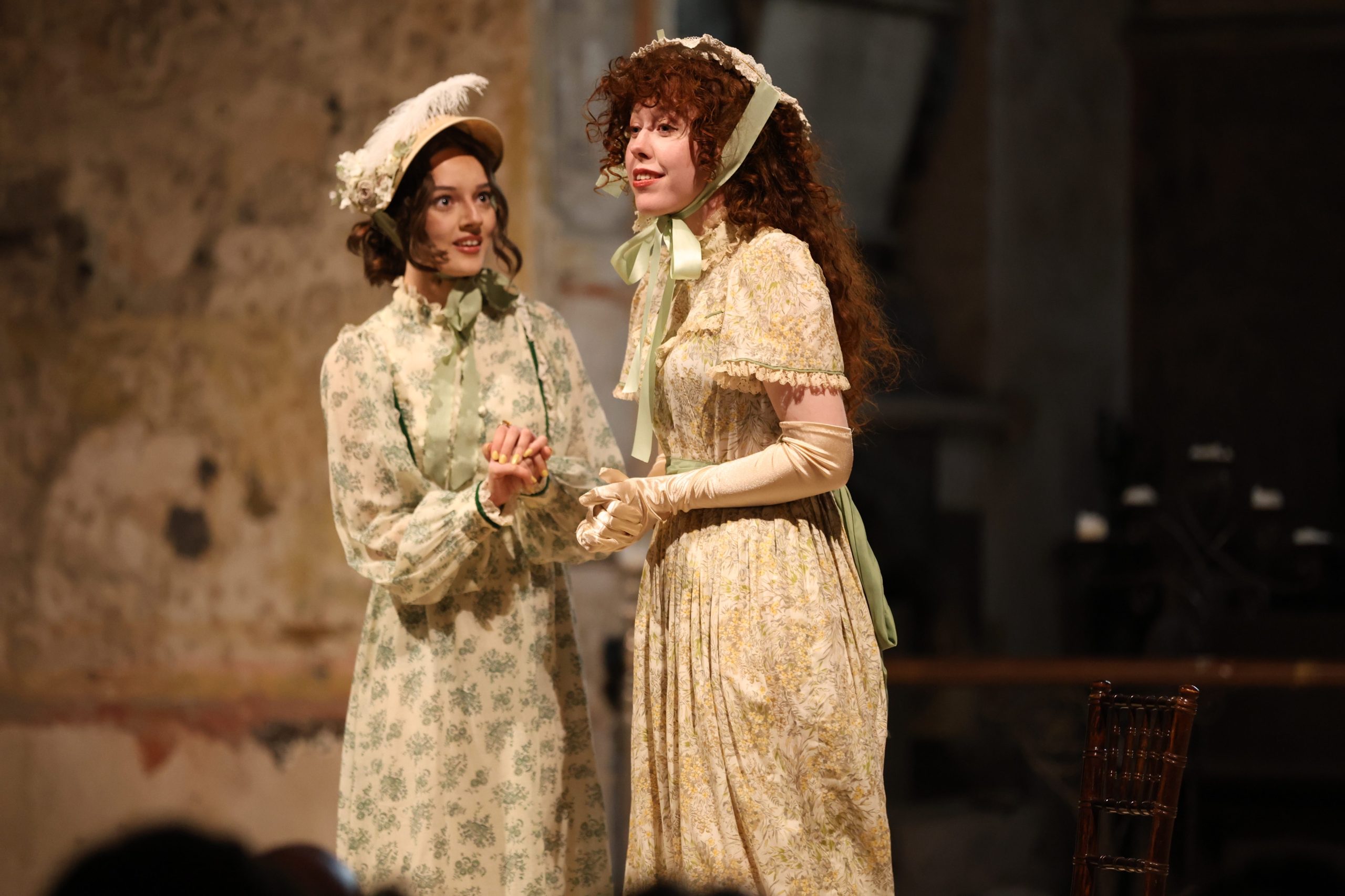 Further into Act One of the night and we are treated to a definitively witty extract from The Importance of Being Earnest. With posh voices and a 19th century countenance, the actors deliver a stellar performance, resplendent in their incredible costumes. This offering features Saffron Hibbitt and Lily Buchan, who bring the piece to life. Buchan also shines in another highlight of the show, in an extract from Clean by Sabrina Mahfouz.